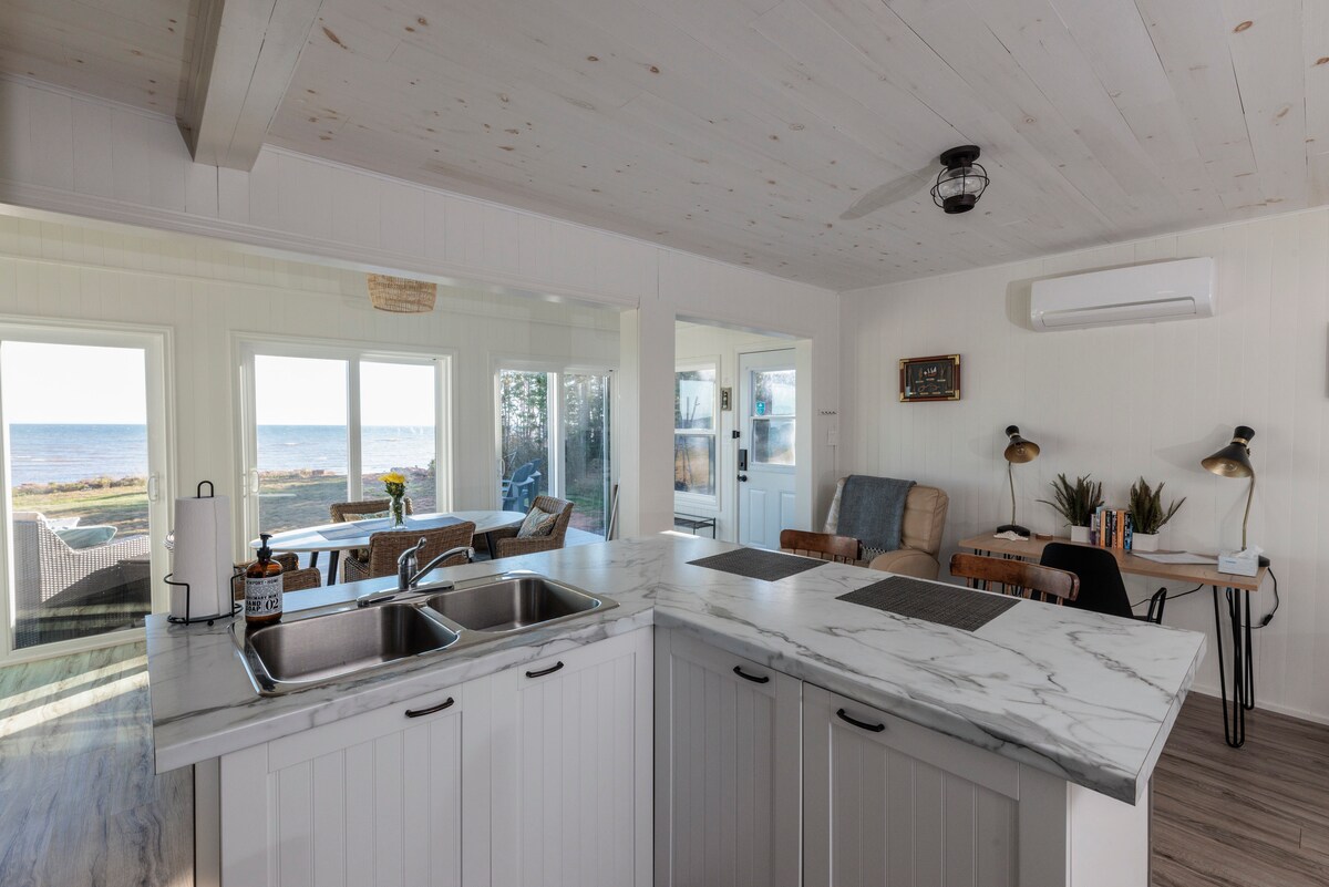 (License #2203212) Relax and rejuvenate in this private beachfront 2-bed, 1-bath modern cottage at the end of Point Prim peninsula. Sliding glass doors open to stunning water and wildlife views. Direct private beach access lets you walk the shore at low tide, dig for clams, or swim. A 10-minute walk to Point Prim Lighthouse & Chowder House. Enjoy sunroom, outdoor shower, fire pit, two city bikes, and fast Starlink Wi-Fi. Perfect for nature lovers and peaceful getaways.
