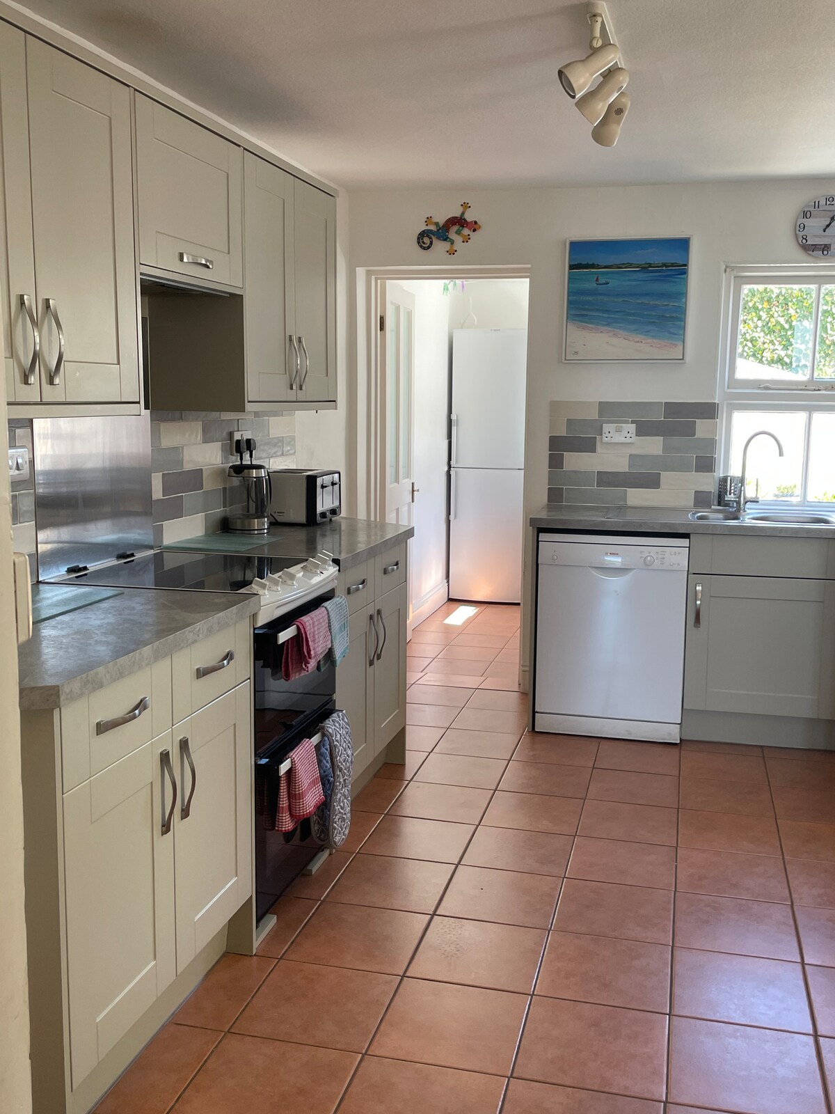 Nuestra casa familiar está en el centro de la ciudad y a pocos pasos de Summerleaze, votada una de las diez mejores playas del Reino Unido por The Times. Las actividades son infinitas e incluyen surf, natación en piscina marina, escalada en roca, pesca, paseos geológicos, excelentes restaurantes y cafés de playa. Vistas al mar desde el último piso.