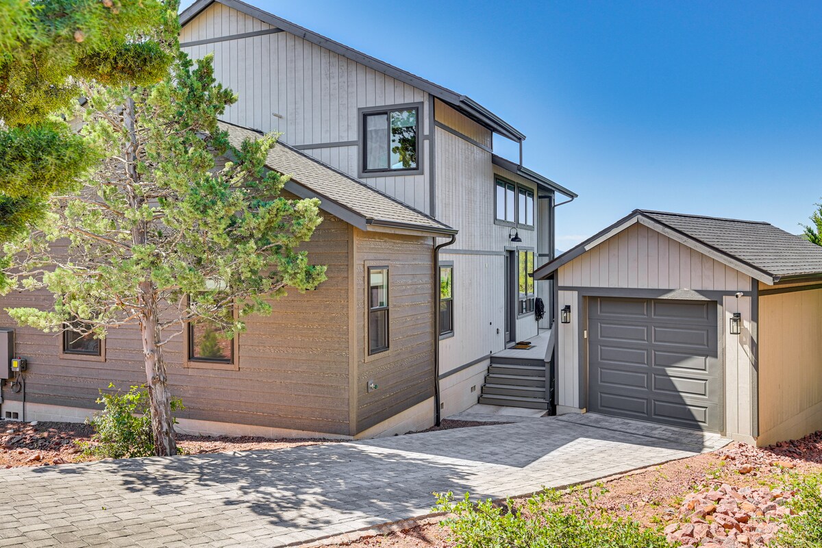Unbeatable Location, Privacy, Style and Views!! THE PERFECT retreat! Professionally cleaned and managed for each guest. Enjoy stunning mountain views from a sprawling wrap-around deck. Relax with high speed Wifi, 50” Smart TV, streaming apps. Walking distance to downtown, and a 5 minute drive to the Pine Trailhead for great hiking options. This well appointed home includes modern furnishings, gas grill, fire pit seating area, and more.
