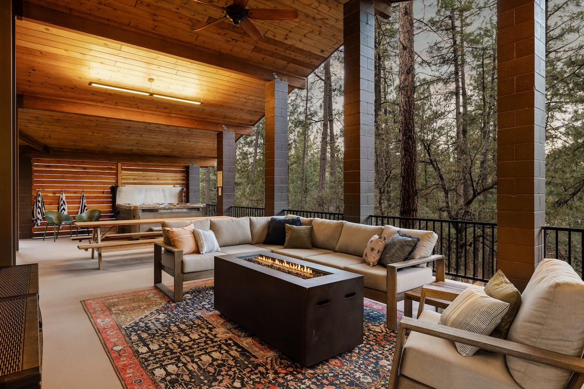 ¡Las vistas de Pine Valley y Mogollon Rim no pueden ser mejores que esto! Nuestra cabaña de 3 pisos cuenta con 2 terrazas con vistas panorámicas desde la parte superior de los pinos. Situada en el límite de Pine en 1/3 de acre, se siente privada y aislada con un tráfico mínimo cerca del final del círculo. La casa de 2172 pies cuadrados tiene 4 dormitorios y un baño completo en cada planta. TV 4K de 87 pulgadas en el nivel principal y una de 4k de 75 pulgadas en la planta baja en la sala de juegos para mantener a los niños ocupados. El sendero AZ Trail está a pocos pasos de la puerta principal.