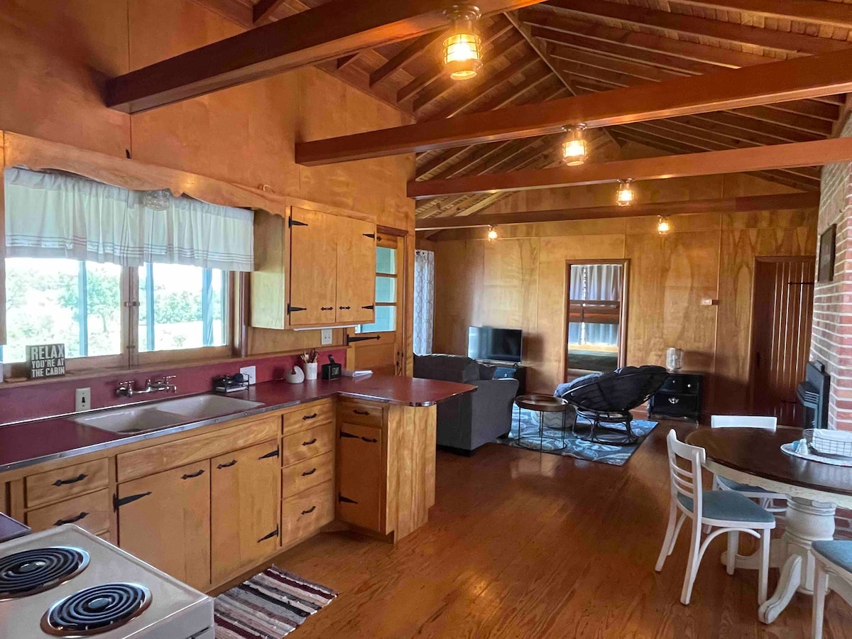 Flint Hills Glamping! Come reconnect with nature and rejuvenate by the water at this unforgettable escape. Stargaze, watch sunsets, or curl up and read on the loft Moonpod. For the explorers, there are plenty of gravel roads to bike, kayaks available for the pond, and flora and fauna to find. ***Please note*** This is a dry cabin-meaning there are no water facilities inside, but there is an exterior entrance to a bathroom/shower off the main house that is available 24/7.