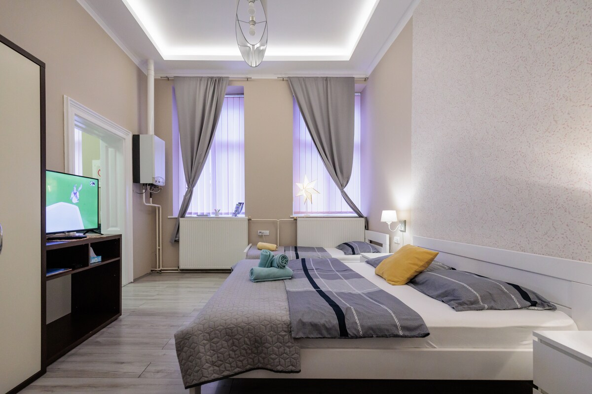 El apartamento es adecuado para parejas, solteros. Es muy cómodo y totalmente equipado. La cocina cuenta con nevera, placa de inducción, microondas, horno, hervidor de agua y todos los cubiertos necesarios. El baño consta de una ducha, un lavabo, un inodoro y un secador de pelo. La habitación tiene una cama doble (160×200), sillón, mesa de comedor,TV, WiFi, armario y todas las cosas necesarias. El apartamento siempre está limpio, desinfectado y equipado con todos los servicios para ayudar a los huéspedes a disfrutar de su estancia y sentirse cómodos.