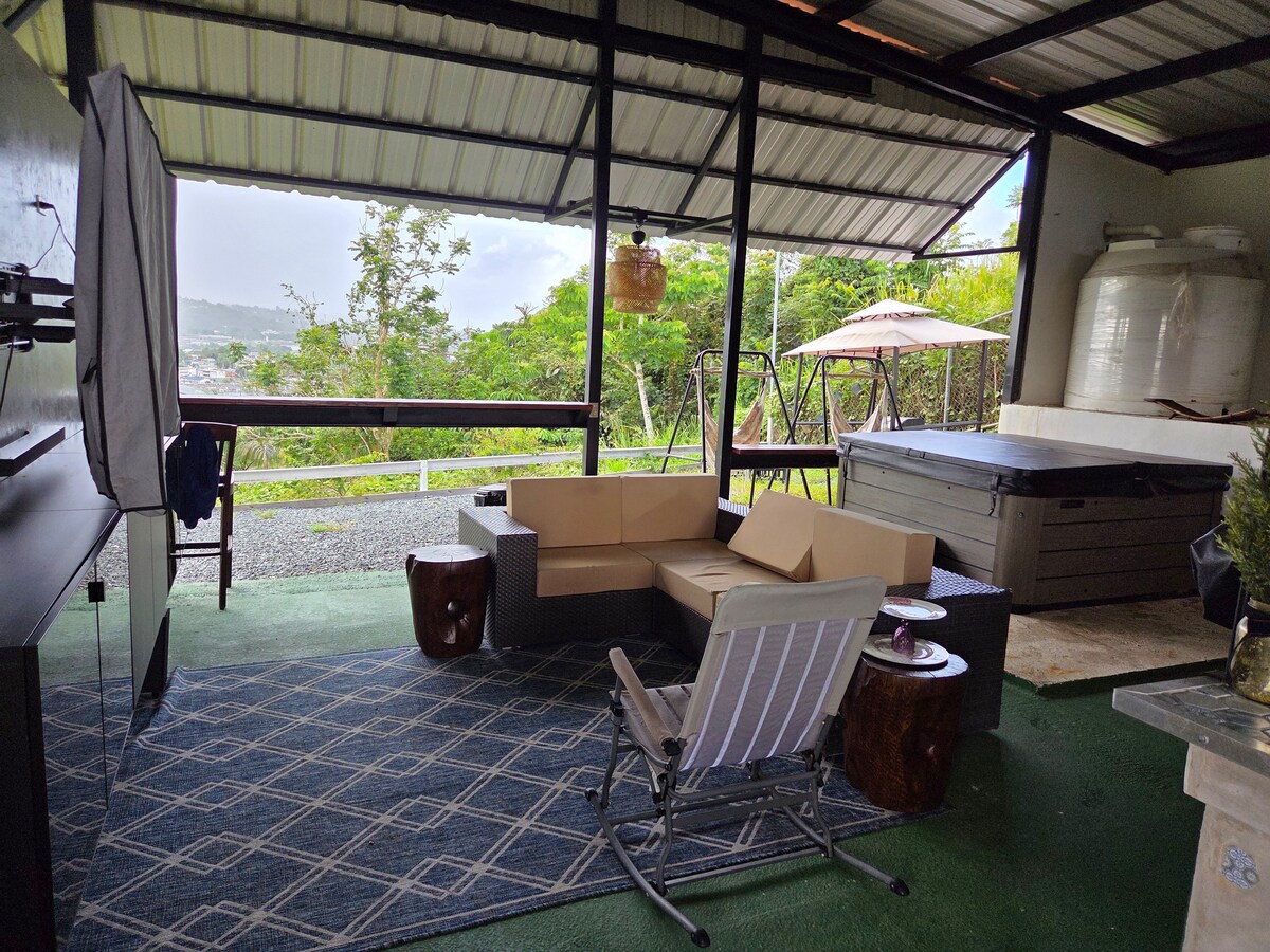 Escape to the mountains in this charming rustic cabin atop a working horse barn. This cozy 1-bedroom cabin offers stunning views of Cidra, a kitchenette, a comfy living area, and multiple balconies to enjoy the fresh air. The highlight is a spacious terrace with breathtaking views and a heated inflatable jacuzzi, perfect for relaxing under the stars. Surrounded by nature and friendly farm animals, it’s the ideal getaway for couples and nature lovers seeking peace and adventure.<br><br>