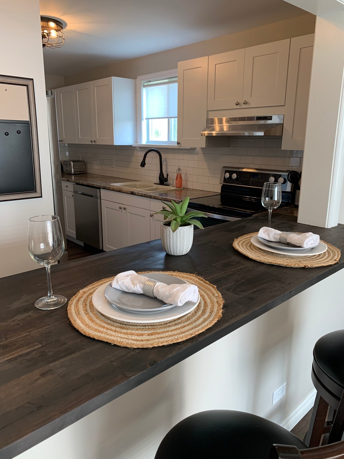 Wee Haven Retreat is a beautifully renovated, bright and modern, lower-level guest unit with private side entrance. Features a fully equipped and modern kitchen, private laundry, and large bathroom with walk in shower. Coffee is provided, and WiFi access is complimentary. Enjoy the spacious living room with Roku TV and cozy up in front of the beautiful gas fireplace! Walk-out to a beautifully landscaped garden and your own private deck space to enjoy the outdoors!!