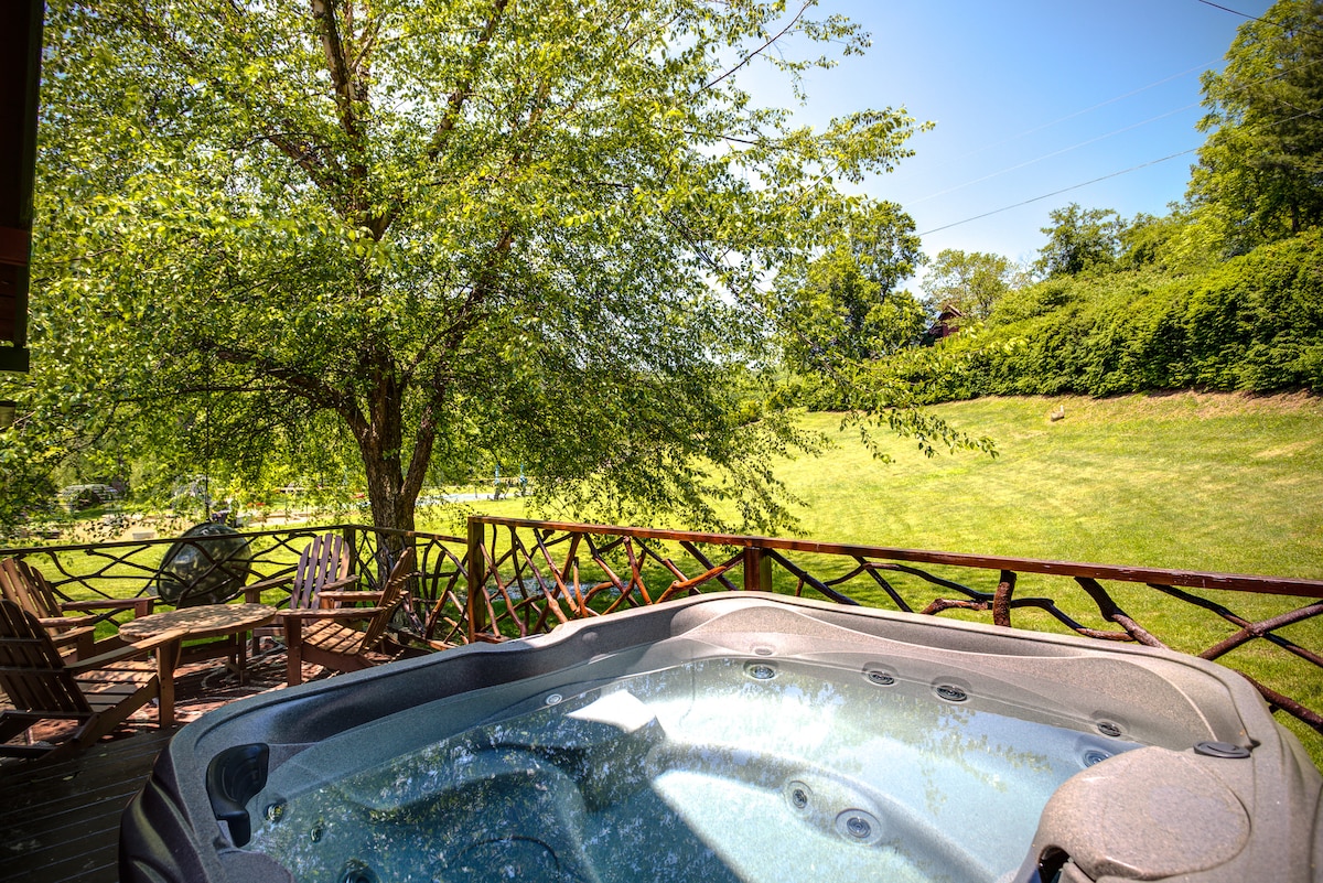 Cabaña de lujo nueva en Creekside con jacuzzi y fogata