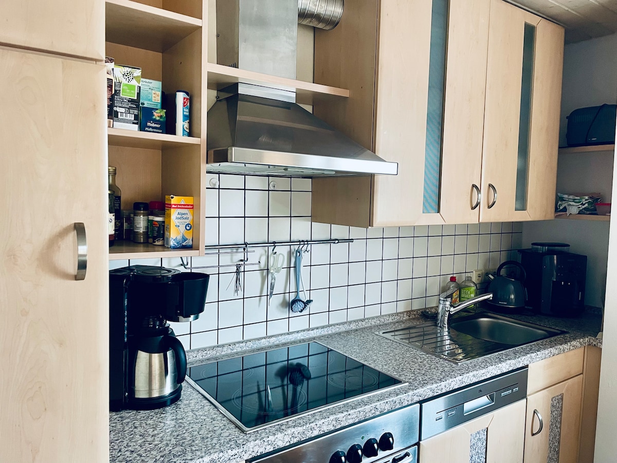 Estás buscando un apartamento de dos habitaciones en una ubicación tranquila en las inmediaciones del comedero de la autopista (2 minutos) y B14 (3 minutos). Entonces estás en el lugar adecuado. El departamento está en una ubicación céntrica: A 3 minutos caminando de la parada de autobús, a 15 minutos caminando de la estación de tren y a 10 minutos caminando del centro de la ciudad, supermercado en las inmediaciones. (mercado orgánico a 5 minutos a pie, Aldi a 10 minutos a pie) En total, el apartamento tiene capacidad para un máximo de 4 personas ( sofá cama y cama).