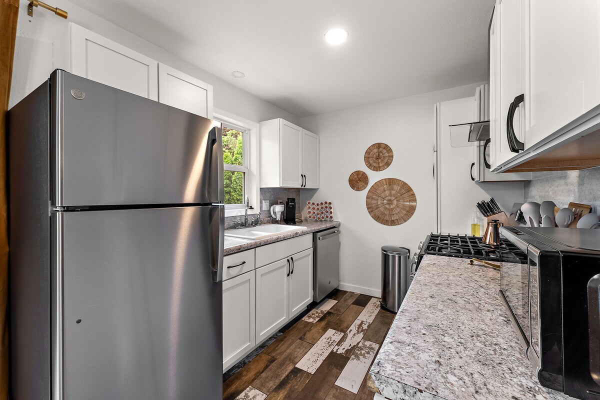 ¡Relájate en tu propia casa de campo privada cerca de la playa y mucho más! Dos dormitorios con camas completas, cocina completa, baño, sala de estar abierta con TV inteligente, futón y amplios asientos. Amplia terraza con parrilla de gas y vistas al lago. Justo enfrente se encuentra la hermosa playa de Starbuck y el embarcadero. Sigue el sendero para bicicletas para tomar un helado junto al puerto deportivo o dirígete al parque estatal para practicar senderismo, montar a caballo y también para practicar senderismo de invierno. ¡Prueba uno de los restaurantes, cervecerías o bodegas de la zona, muchos con vistas al lago! ¡La vida en el lago en su máxima expresión!