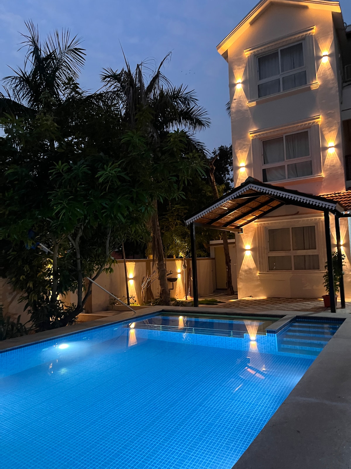 Una lujosa y espaciosa villa totalmente exclusiva de 3 dormitorios con su propia piscina privada y entretenimiento como miniteatro, PS5, barbacoa y juegos de mesa, ideal para que familias y niños puedan disfrutar del lujo de nuestra piscina con total privacidad. También ofrecemos una variedad de juguetes de piscina bien mantenidos disponibles. La zona cuenta con agentes de entrega de alimentos como Swiggy y Zomato y entrega directa de restaurantes por encargo. - Cámara de CCTV disponible fuera de la casa por seguridad. - Aparcamiento privado.