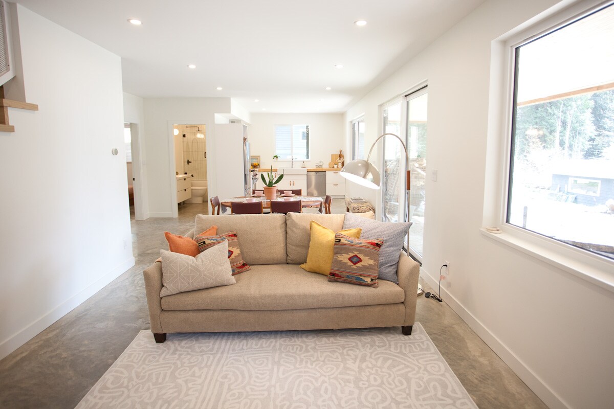 Esta nueva y moderna suite de dos dormitorios con vistas al mar está situada a pocos pasos de la carretera que conduce a la playa. Camina durante 10-15 minutos hasta el encantador «centro» de Roberts Creek o disfruta de los numerosos senderos forestales de la zona. La suite es nueva y tiene vistas al mar, jacuzzi, sauna, suelos de hormigón pulido con calefacción radiante, techos de 9 pies, sala de estar de concepto abierto, una bañera profunda, un gran patio cubierto para hacer barbacoas y una cocina completa. Ven y relájate...