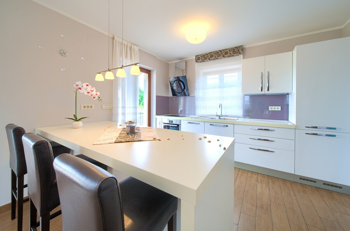 El apartamento "Nilaria" está situado en Hreljin, un pequeño pueblo tranquilo en la parte trasera de los concurridos destinos turísticos como Crikvenica, la isla de Krk, Rijeka,Opatija...y a solo 10 minutos en coche de la primera playa.Tiene una hermosa vista sobre la bahía de Kvarner y la piscina frente a la casa. Con su entorno verde tranquilo y salvaje, es el destino perfecto para aquellos que quieren ahuyentar el estrés. Mercados locales, bares, panaderías y pizzería encantadora están a solo 250 metros.