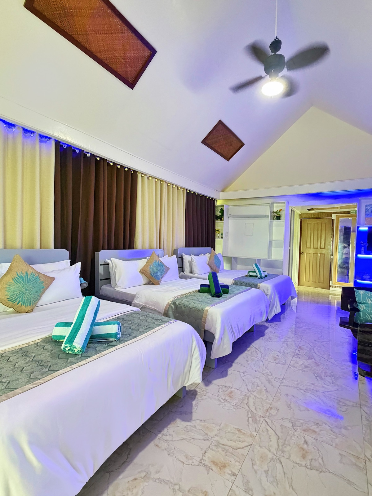 Tenemos 4 habitaciones tamaño king de lujo con un gran balcón. Cada habitación tiene una cama tamaño king y baño privado, con ventilador superior, aire acondicionado y TV por cable. Los baños tienen duchas de lluvia de agua caliente de alta presión. Todas las habitaciones tienen su propio balcón con zona de estar. El wifi Starlink es gratuito y está disponible en todo el centro vacacional. Los huéspedes pueden disfrutar de nuestra piscina al aire libre y jardines.