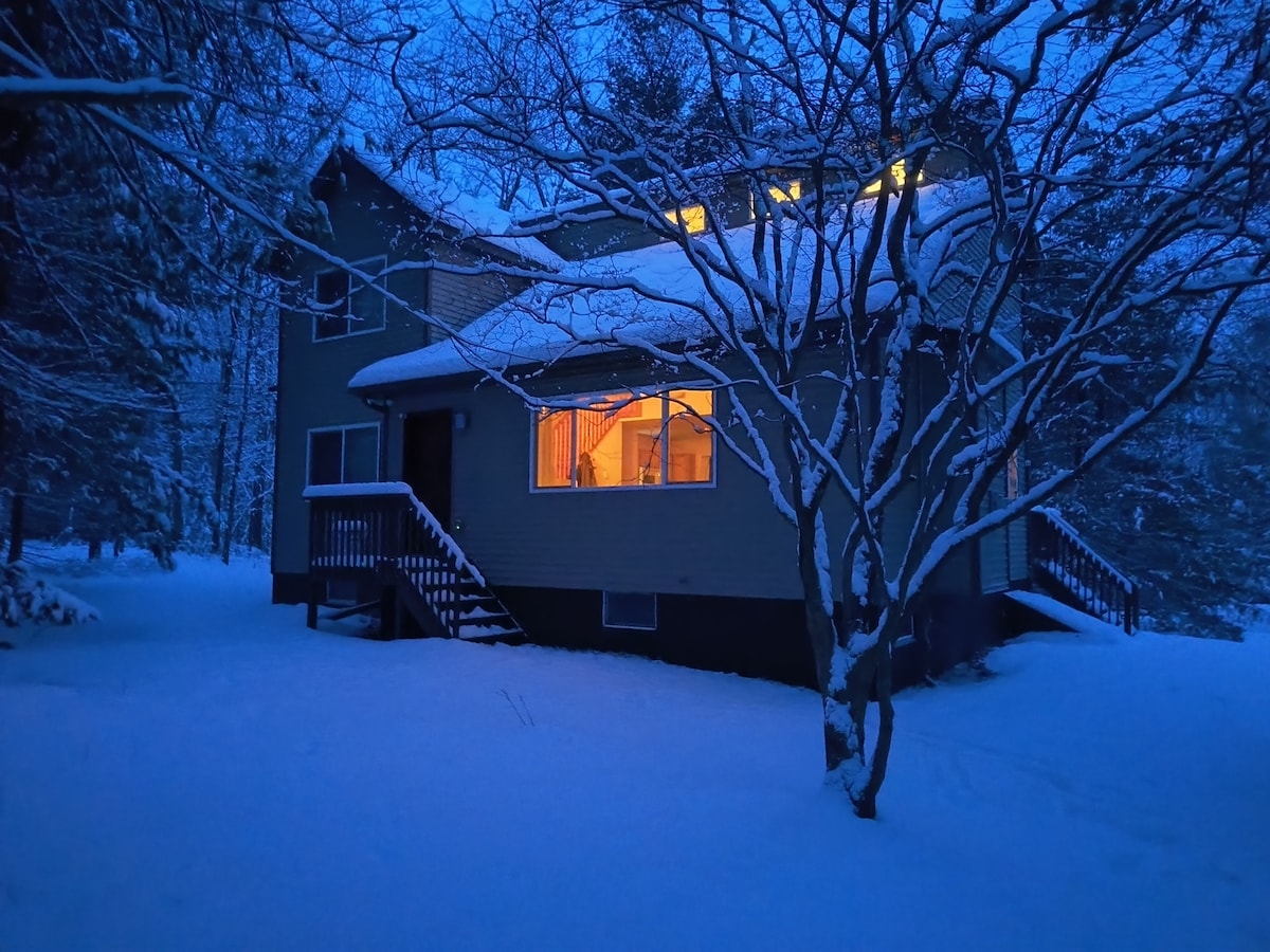 Cozy 3BR/2BA Bushkill retreat perfect for families, couples, or friends. Enjoy winter days by the fireplace, relax in the hot tub, or grill outdoors year-round. The backyard offers peaceful snowy views and a firepit for s’mores. Just minutes from Shawnee Mountain for skiing, snowboarding, and tubing adventures. Enjoy nearby trails, local dining, and plenty of winter charm throughout the Pocono Mountains, making your stay relaxing, memorable, and filled with seasonal magic. And calm winter vibes.