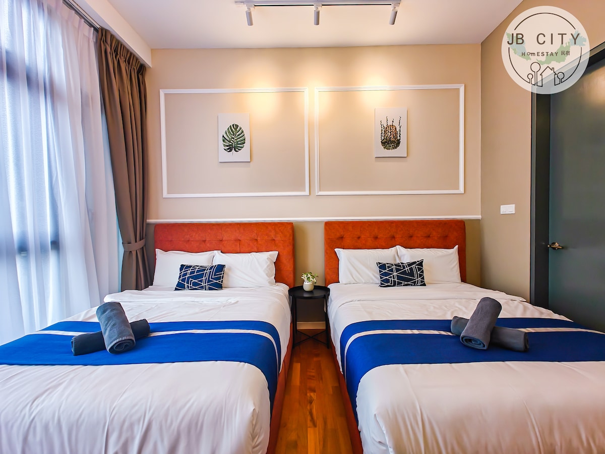 (1+1 BR & 1 bathroom) Contemporary modern and cozy condo in the heart of JB city centre. Suitable for 4pax family, friends and business group. **5mins to CIQ, City Square, KSL, Pelangi, and Larkin **8mins to Mid Valley Southkey, Larkin Sentral and Sentosa **15 mins drive to Paradigm mall, Sutera, Skudai and Mount Austin ✔ 4K SmartTV ✔ High Speed Wi-Fi, working tables with extension plug ✔ Washer ✔ Airconds in every rooms. ✔ Atari console, Mahjong, and Board games. ✔ FREE parking for 1 car