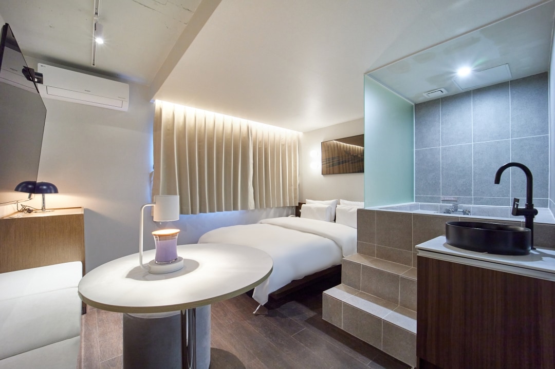 [아늑 호텔 해운대] 코스모스 수페리어 더블 #스파 #대형TV #고급스피커 #힐링숙소
