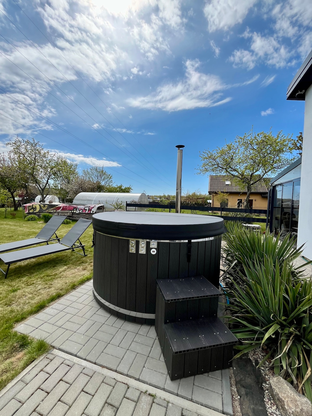 Casa moderna con bañera de hidromasaje y terraza: todo lo que necesitás para relajarte. Te espera: Una terraza amplia con muebles de exterior, reposeras, un brasero y un patio verde. Bañera de hidromasaje, perfecta para relajarse en todo tipo de clima. (Con un costo adicional). Interior moderno con cocina totalmente equipada y todos los servicios básicos. Aire acondicionado para las noches frescas de verano y calefacción para una comodidad acogedora durante todo el año. Secarropas, lavarropas y baño elegante