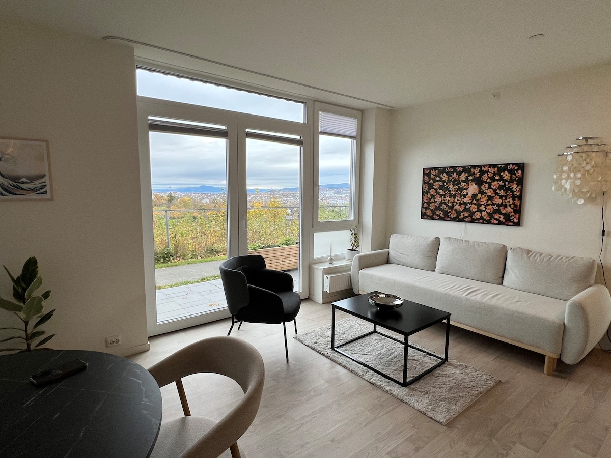 Departamento moderno con una hermosa vista de Trondheim. A 10-15 minutos en autobús/auto del centro de la ciudad. Incluye estacionamiento subterráneo. Parque infantil fuera del departamento. También hay una escuela cerca, perfecta para que los niños jueguen. Esquí (Bymarka), campo de golf y atletismo cerca. Zona tranquila. 2 dormitorios : - cama 140*200 - cama de 160 x 200 un sofá cama en el living (140 x 200) posibilidad de cama para niños 50 m2, apto para un máximo de 4 adultos. Para las familias con niños, hay 6 camas.