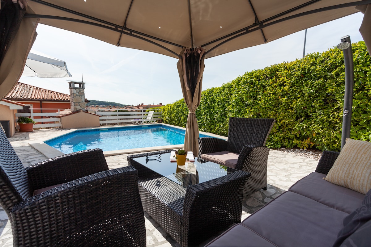 ¡Te damos la bienvenida a nuestra nueva y moderna villa en Labin, Istria! Cuenta con 4 dormitorios, 3 baños, 1 aseo para invitados, cocina totalmente equipada, salón comedor, piscina privada, jardín con zona de juegos, wifi, aire acondicionado y lavadora. Situada en una zona residencial tranquila, supermercados, restaurantes a 1 km, playa de Rabac a 15 minutos, casco antiguo de Labin a 10 minutos. Ideal para familias o grupos de amigos.