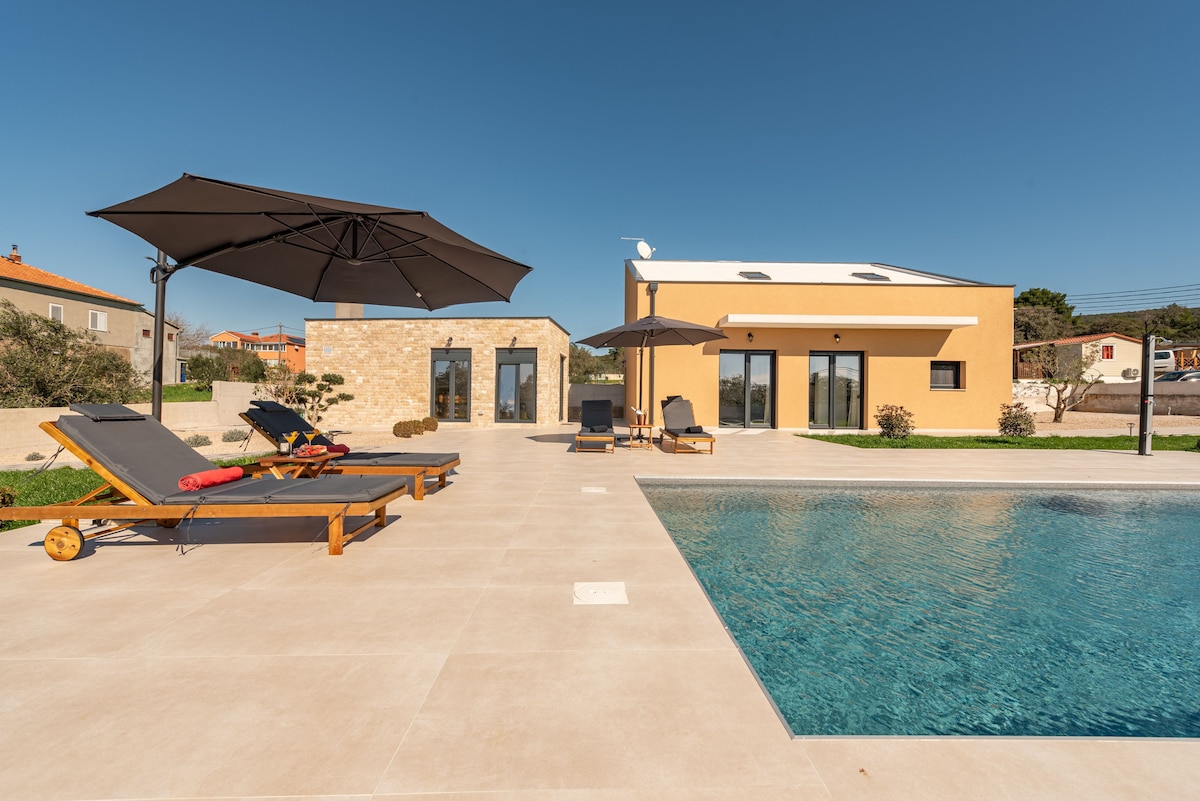 Villa Roza es un edificio nuevo ubicado en la tranquila ciudad de Debeljak, a 4 km del mar y la playa, a 5 km del aeropuerto y a 15 km de Zadar. En la propiedad de 1000 m2 hay una zona de villas con piscina climatizada al aire libre, jacuzzi al aire libre, campo de fútbol, parque infantil, chimenea al aire libre, terraza abierta y cubierta, parque infantil y aparcamiento con dos plazas de aparcamiento.
