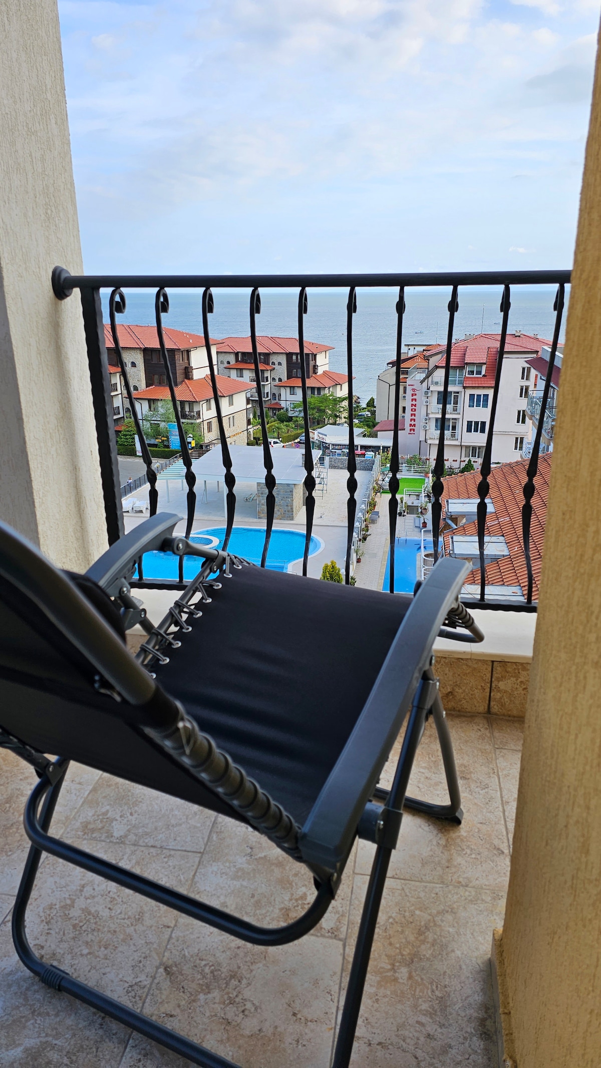 Bienvenido a un apartamento vacacional único con una impresionante vista panorámica del mar y Nessebar ,con una enorme terraza donde es agradable encontrarse con amaneceres y puestas de sol. Es acogedor, atmosférico y festivo El departamento está a solo 180 metros de la playa. En el territorio hay una piscina con tumbonas ,restaurante , áreas recreativas. El apartamento tiene una sala de estar amueblada con zona de cocina,todos los electrodomésticos necesarios, un baño con ducha y un dormitorio con ventanas panorámicas. Podrás relajarte y disfrutar de tu estancia.