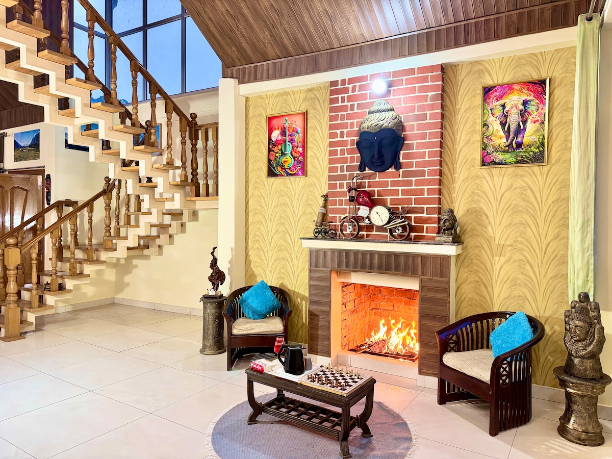 Just a smooth 15 kms drive from Kasauli Mall Road, this serene & private hideaway delivers the best of both worlds—peaceful, quiet, and still close to the action with excellent wide smooth roads (unlike the narrow & bumpy roads at & around the KasauliMall Road area). Enjoy sun-facing bedrooms with attached baths, a cozy digital fireplace, a lounge/bar room, dedicated working space, a spacious balcony, a secure common lawn for kids, and ample free parking. A perfect blend of comfort and calm.