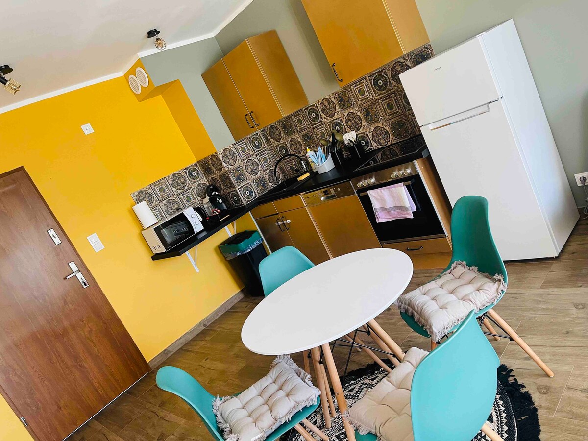 Un apartamento tranquilo y acogedor en el corazón de la ciudad, no muy lejos del cruce fronterizo. Excelente ubicación y muchas comodidades. Cerca: mercados, farmacia, panadería, peluquería, parque, oficina de correos, hospital. El dormitorio tiene una cama doble. La sala de estar tiene un sofá cama grande. Se proporcionan sábanas, toallas, secador de pelo, plancha, microondas y hervidor de agua inalámbrico.