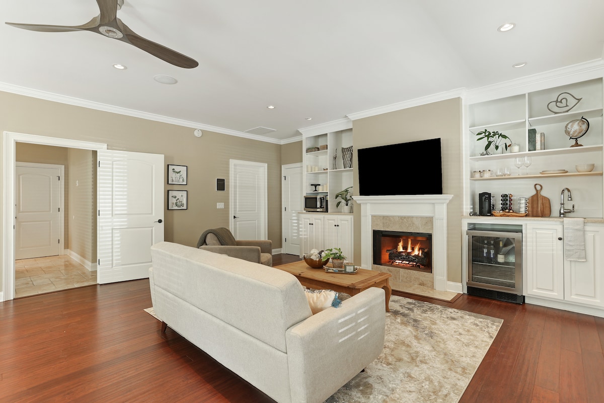 UPDATED LUXURY, FASTIDIOUS CLEANLINESS in historic OldTown Bluffton’s coziest carriage house. OldTown’s vibe is just plain fun. Stoll 2 blocks to super restaurants, night life, art galleries, boutiques, antebellum homes & lush waterfront parks on the idyllic May River. New in 2018 w/ quartz counters, private bedroom w/ plush king-size bed, upscale bath w/ soaking tub, bright living/dining room, full kitchen & romantic rocking-chair porch up in moss-draped oaks. Read our Reviews. Guests love it!