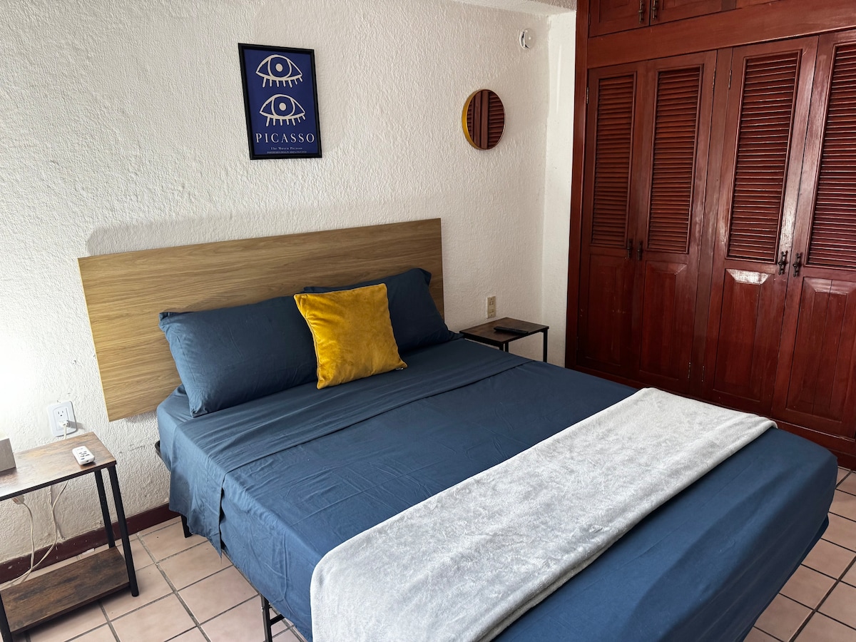 Desde este céntrico y amplio alojamiento entero, podrán tener fácil acceso a todo, enfrente del departamento se encuentra un OXXO y caminando encontraran farmacias, restaurant, cafés,panaderias, comercios, artesanías, banco, cocina económica, pizzería, etc. El alojamiento cuenta con: (1)Habitación con 1 cama king size, 1 baño,aire acondicionado y T.v 1 colchon inflable matrimonial (1)Habitacion 1 cama king size,aire acondicionado y T.v. Sala-comedor-cocina Terraza y area de lavado
