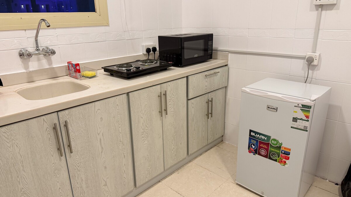 Kick back and relax in this calm, stylish space. A modern and studio apartment with self-check-in, located in a prime area of Al Muruj. All amenities are available, including Netflix, Wi-Fi, and a coffee and tea corner. The apartment features a master bed and a comfortable sofa that converts into a bed. Elevator access and private parking are also provided.