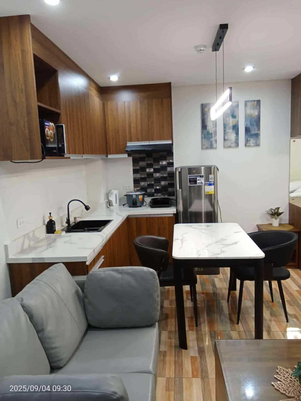 Stay in our newly built, modern studio-type unit located right in the city center. This fully furnished space features air conditioning, fast WiFi, and a private balcony. The kitchen is equipped with complete utensils, a rice cooker, microwave, and induction stove for home-style meals. The bathroom comes with a hot shower for your comfort. With 24/7 CCTV and close proximity to restaurants, banks, malls and the church, you’ll enjoy both security and convenience.