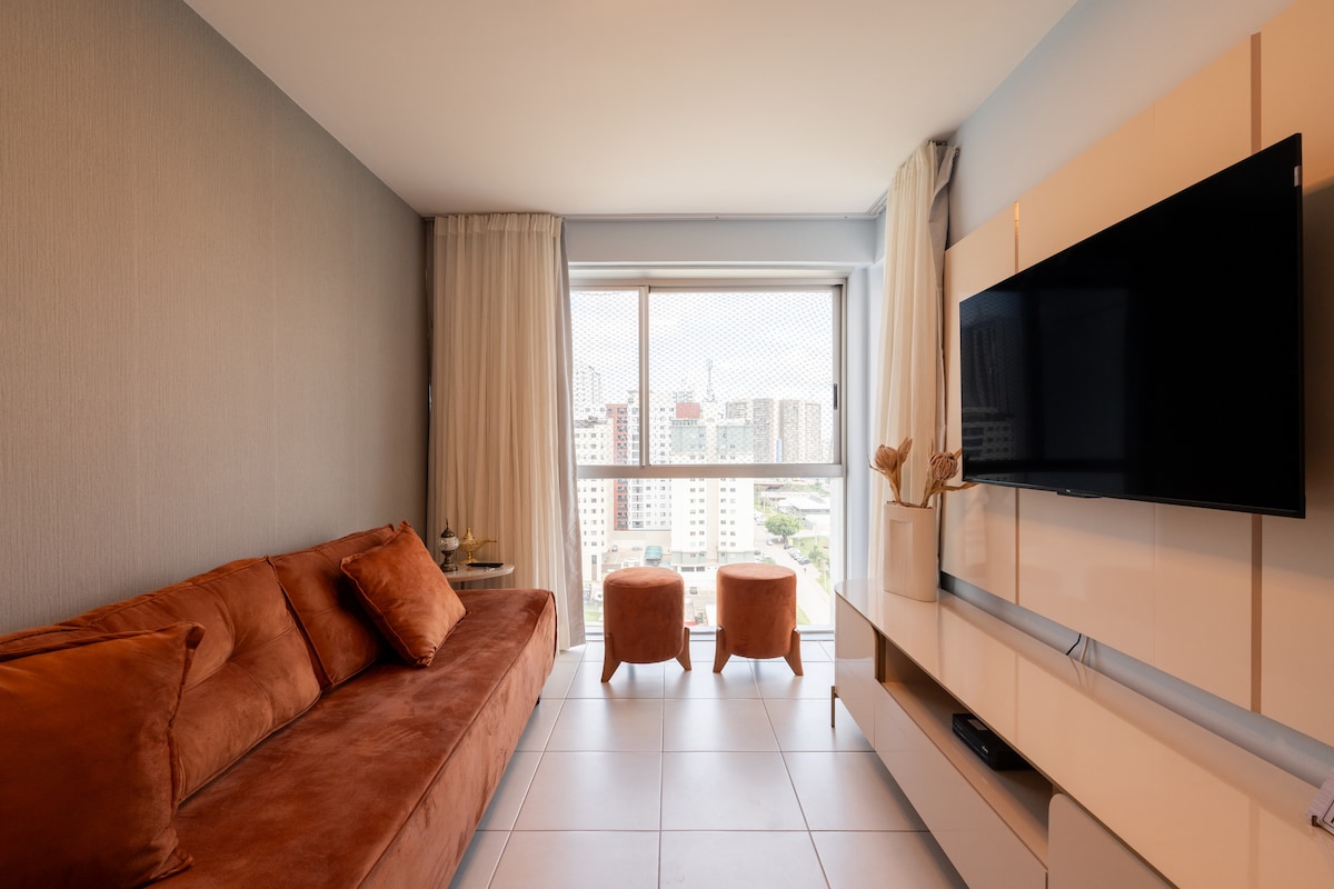 Experiencia única y elegante en este lugar cómodo y bien ubicado con una excelente ubicación en el centro comercial DF Plaza. Diseñado exclusivamente para la comodidad de nuestros huéspedes, el departamento tiene una cama extremadamente cómoda, así como un sofá, TV inteligente, aire acondicionado y una cocina completa (freidora de aire, sándwichera, microondas, cocina de inducción). Tenemos una hamaca para instalar en el balcón. Además, el complejo tiene una estructura completa, con un centro comercial que tiene varias opciones de comida y ocio.