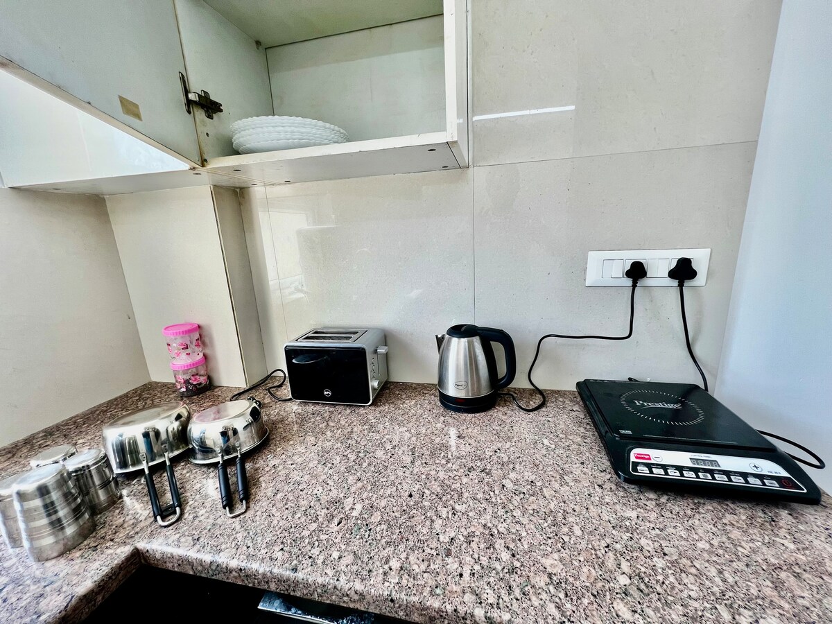 Quedate en nuestra elegante y moderna casa familiar de 1 habitación con una sutil temática inspirada en el bosque, cálidos detalles de madera y una acogedora iluminación ambiental. Diseñado para la comodidad y la relajación, el espacio ofrece una escapada tranquila del estrés diario. Relajate en el dormitorio con un televisor inteligente y acceso gratuito a OTT, perfecto para noches de cine y para ver tus programas favoritos. Ideal para parejas o personas que viajan solas y buscan una estadía tranquila con comodidades modernas y entretenimiento premium incluido.