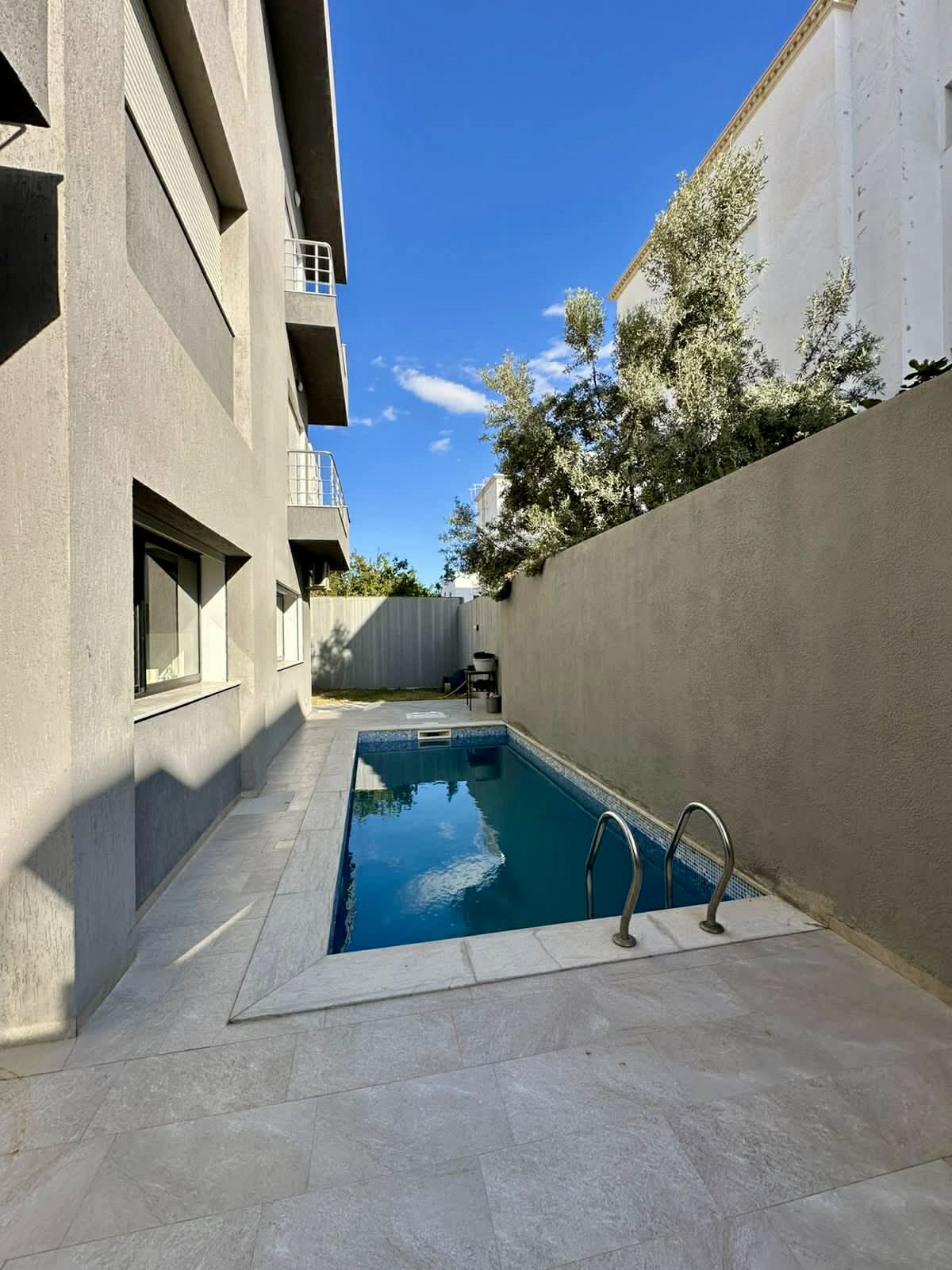 Cozy 390m2 villa with a 500m2 breathtaking garden, and a 12/4m swimming pool. It has two parental suites, two double bedrooms, four bathrooms, a kitchen and a garage. Richly equipped. The villa is a part of Le Royal Hotel and Spa residence in Yasmine Hammamet, highly secured area.The beach is within a 5min walk. Quiet and secure, close to shops and restaurants.The villa is entirely air-conditioned. We provide: Coffee machine, Wifi, Netflix, Baby bed, Barbecue,Washer…