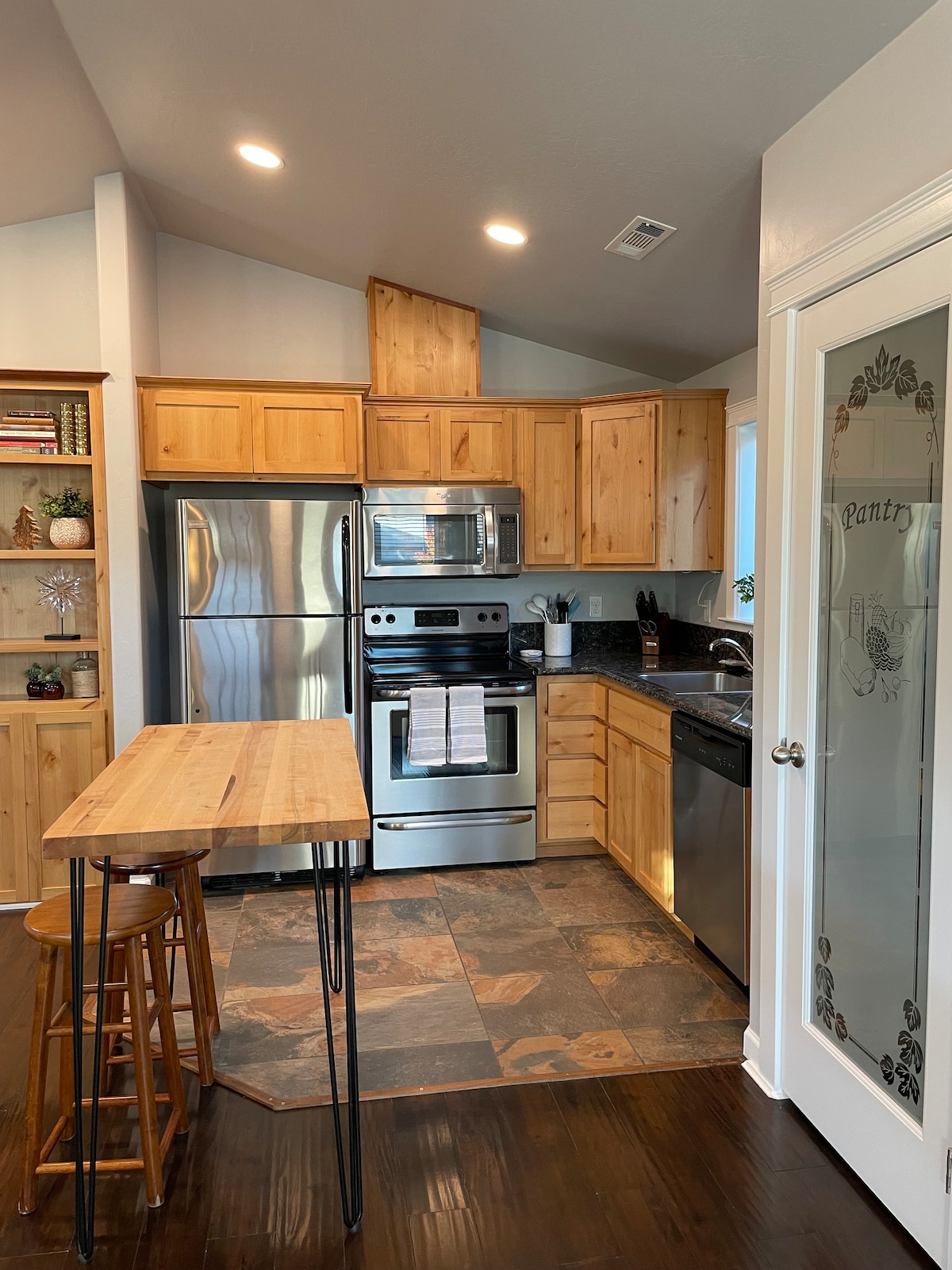 A una milla de la interestatal. Este hermoso Airbnb artesanal fue construido en 2019 y la atención a los detalles se nota. Casa privada entera, patio grande, lavadora/secadora, cocina completa, ducha de azulejos y arriba con espacio adicional y dormitorio. Cerca de Ashland, Jacksonville y Medford. A poca distancia a pie de Phoodery, la esquina de Clyde y el minimercado. El espacio no es apto para niños pequeños o ancianos debido a las escaleras empinadas que conducen a las habitaciones.
