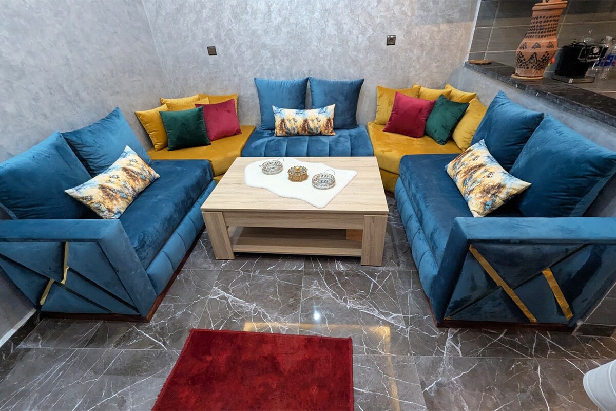 Alójese en el corazón de Marrakech en nuestro apartamento de 2 dormitorios y 2 baños. Disfrute de ropa de cama Simmons de alta gama, wifi de alta velocidad (fibra óptica) y una decoración moderna con un toque étnico. Cocina totalmente equipada, bañera elegante y ducha italiana. A pocos pasos de la plaza Jemaa el-Fna, la Plazza y el Carré Eden. Nota: No se admiten parejas marroquíes no casadas.