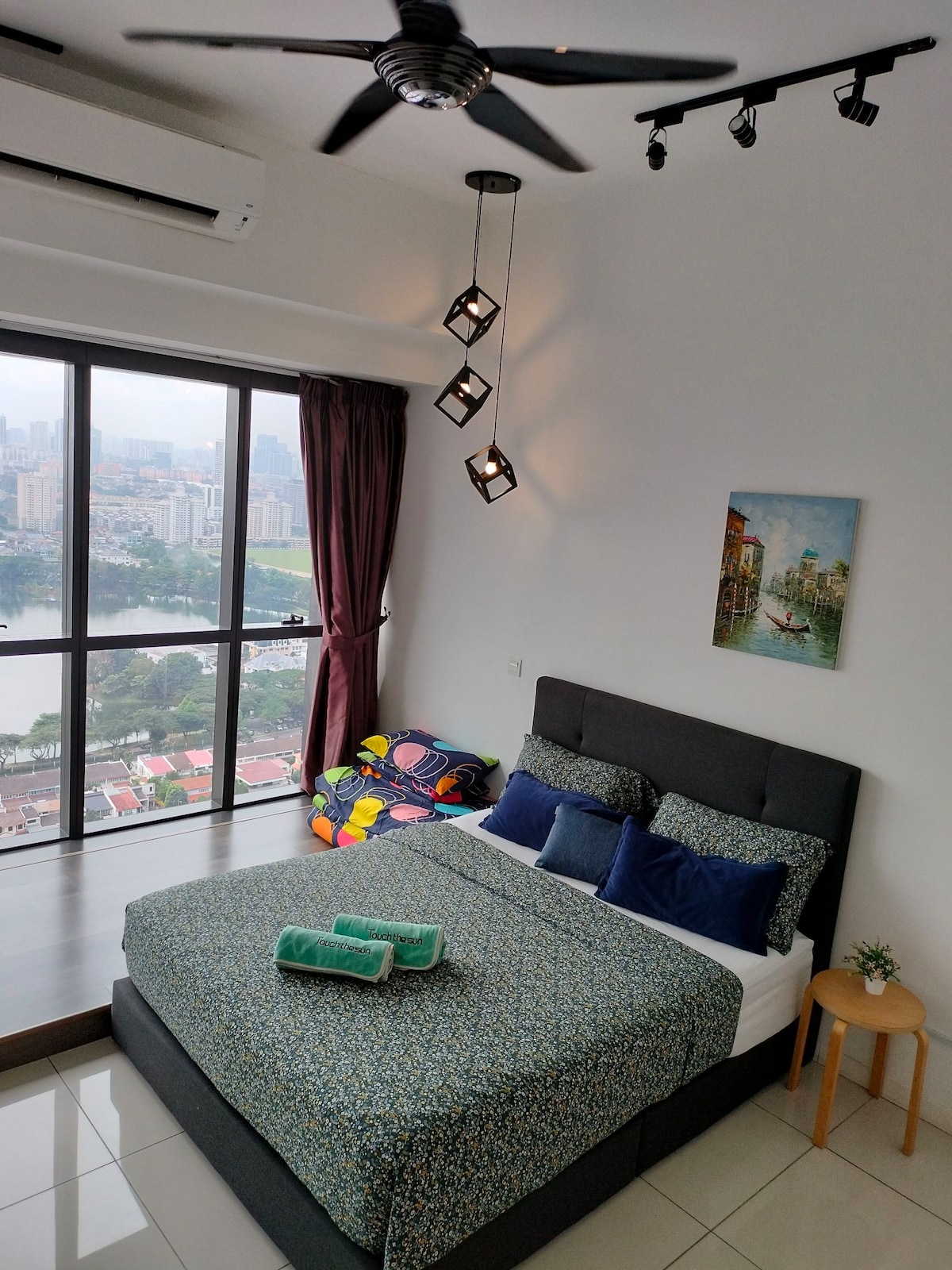Este apartamento de 3 dormitorios y 2 baños perfectamente ubicado en Kampong Bharu, Kuala Lumpur, cuenta con impresionantes vistas panorámicas del horizonte de la ciudad de Kuala Lumpur con las Torres Petronas, la Torre KL, Merdeka 118 y Exchange 106 a la vista. Está totalmente equipado con todo lo necesario para unas vacaciones en familia o un viaje de trabajo. El espacio perfecto para una familia que quiere una experiencia verdaderamente memorable y digna de Instagram. Una ubicación privilegiada con LRT al lado significa que tienes toda la ciudad de Kuala Lumpur en la puerta de tu casa.