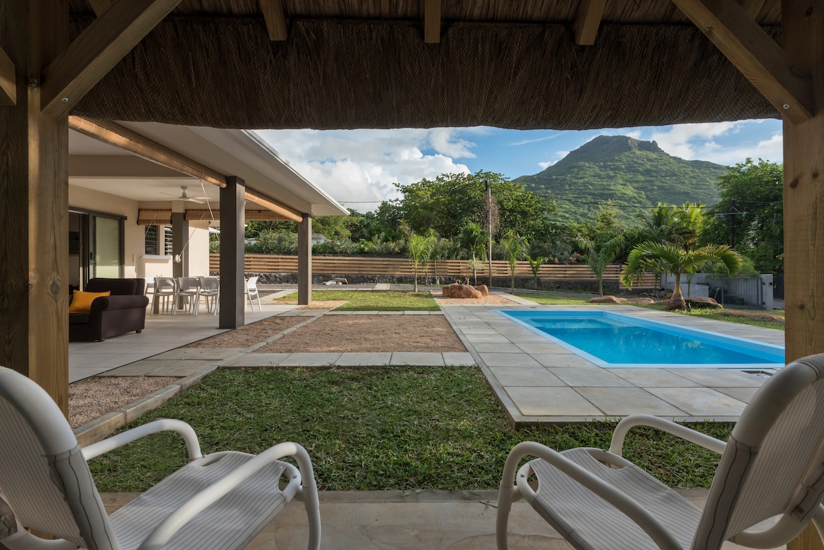 Escape to a private luxury cottage where nature, comfort, and tranquillity meet. Located within a secure gated nature reserve at the foot of the highest peak in Mauritius, lush tropical garden, private pool, and stunning mountain views. Enjoy complete comfort and privacy with your own entrance, fenced garden and parking. All of this, just 5 – 20 minutes drive from the island’s most spectacular west coast beaches, Black River National Park (nature hikes and trails), gyms, shops and restaurants.