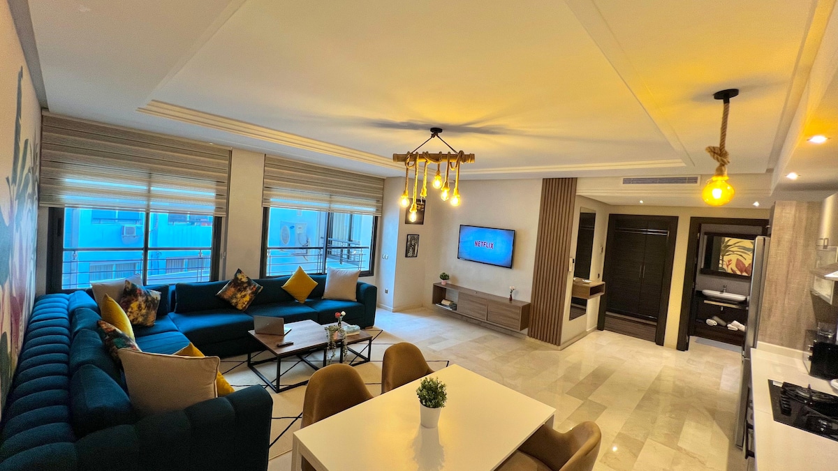 Descubre el lujo en el barrio de las princesas en Casablanca. Nuestro elegante apartamento combina comodidades modernas y una decoración elegante para una estadía inolvidable. Con una ubicación ideal: cerca del estadio 🏟 mohamed 5 y de Casablanca finance city. el apartamento está rodeado de los grandes centros comerciales de las tiendas de alta gama de restaurantes gourmet y grandes superficies. el apartamento contiene muebles de alta gama y equipamientos esenciales y modernos.