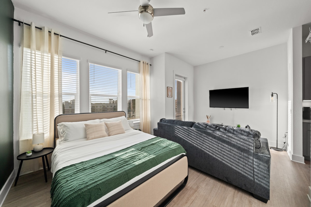Suite moderna de 1 dormitorio + cargador de vehículos eléctricos • Cerca del estadio y TPA