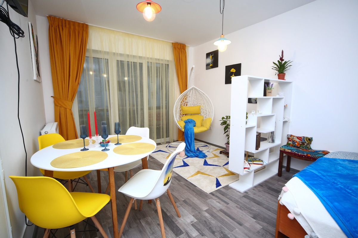 Comfortable, warm, well-furnished studio, walking distance from the Old City and the new city center. The perfect base for your Transylvanian "paseos", whether you're looking for a summer break surrounded by nature, hiking in the mountains surrounding the city, or a skiing holiday, or just exploring the city and the castles around, this is the place for you.