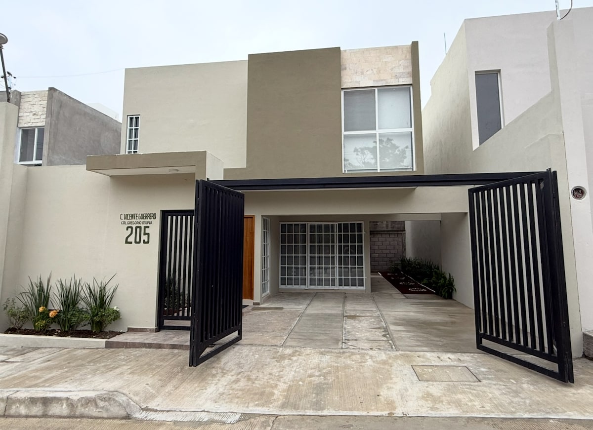 Limpia y acogedora casa con todo lo necesario para disfrutar de unas increíbles vacaciones!! 3 recamaras...2 con cama matrimonial y una con 2 camas individuales, todas equipadas con aire acondicionado, 2 baños completos. Ubicada cerca a las salidas a los principales destinos turísticos: Xilitla, Tamul, Micos, Tamasopo, El Salto y Tampico. Estamos cerca del Hospital para cualquier emergencia.