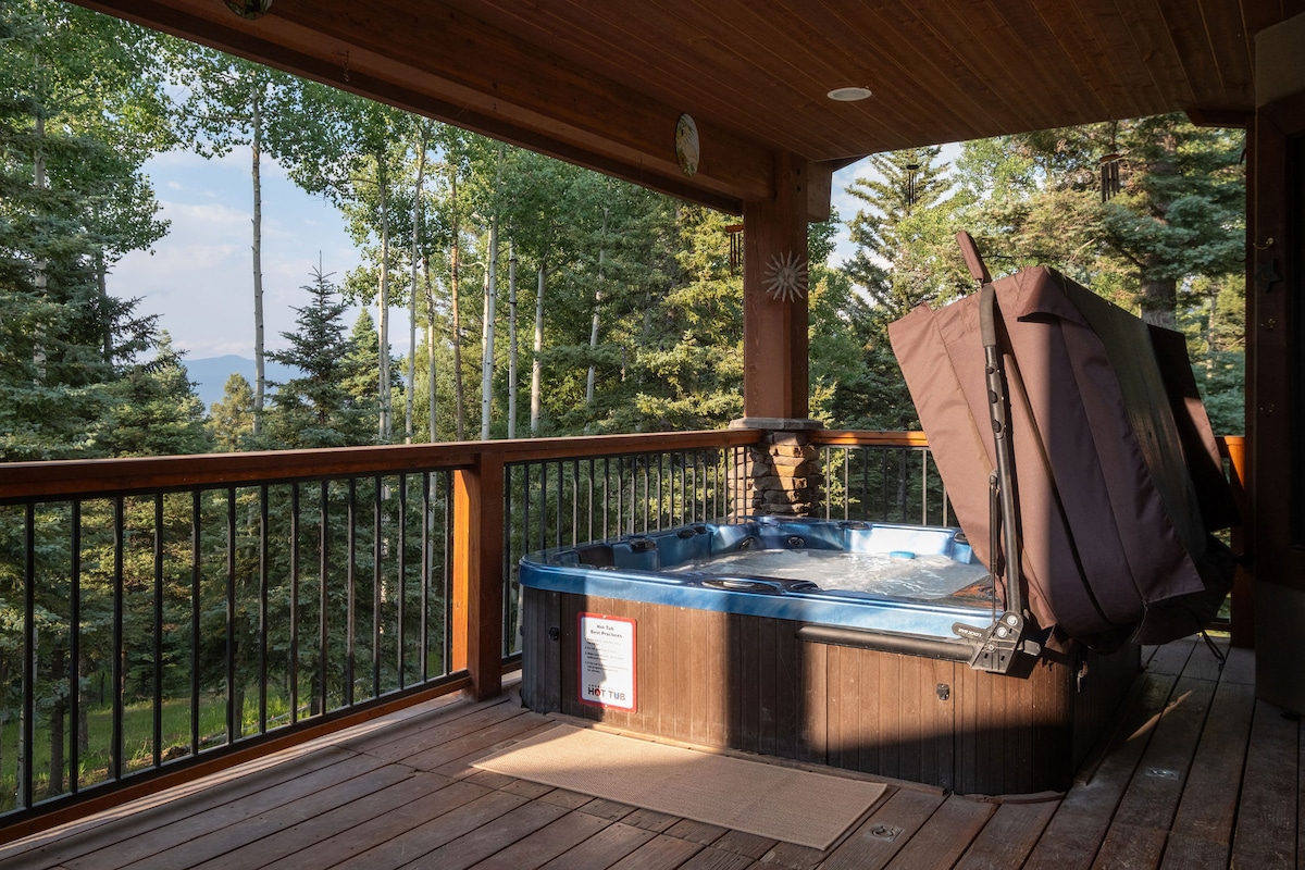Minutes from Angel Fire Resort, this cozy mountain retreat has a wraparound deck and patio with outdoor fireplace surrounded by tall pines as well as an indoor fireplace for winter nights in a space perfect for families. Close to the golf course for summer fun and minutes from the ski lifts in winter. Nearby trails for hiking and biking in the summer, snowshoeing and cross country skiing in the winter. Walk to Monte Verde Lake for fishing, paddle boards, kayaking, or relaxing on shore.