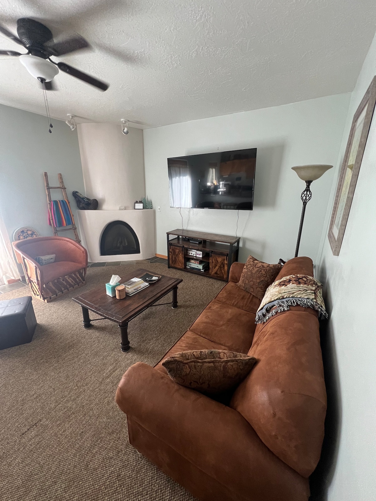 Welcome to our cozy Taos Ski Valley condo! This spacious and homey condo is located just a hop skip and jump away from Lift 1 (1.5 miles from Taos Ski Valley !!) This 2 bedroom, 1.5 bathroom condo sleeps 6 comfortably. Couch has comfy Queen pullout. This retreat offers a perfect blend of comfort and convenience for your ski adventure. Enjoy the balcony with the soothing sound of the Gavilan stream rushing down from the peak year round.