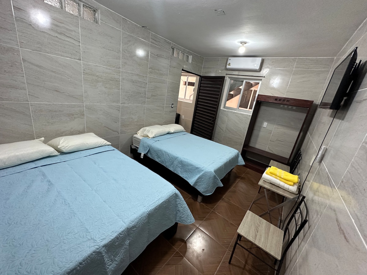 Departamento céntrico, cómodo, tranquilo y climatizado. Este departamento está situado en una sola planta, en el día puede ser un poco caluroso, pero con el aire acondicionado prendido es lugar muy cómodo y fresco. En la habitación se cuenta con dos camas matrimoniales, un baño independiente completo, dentro de la habitación, aire acondicionado, internet y privacidad. NO SE ACEPTAN MASCOTAS