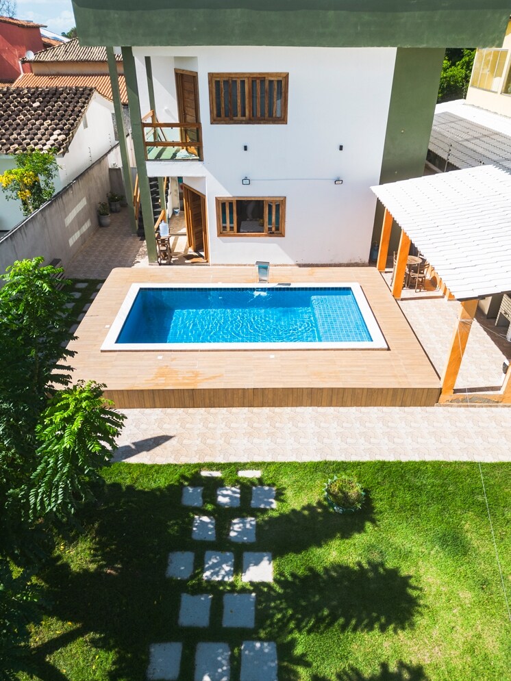 Ven y disfruta de un lugar acogedor y elegante, perfecto para relajarte después de un día increíble en las playas de Porto Seguro. Disfrutá de momentos agradables con familiares y amigos en un ambiente relajado, ya sea charlando, haciendo un delicioso asado o relajándote junto a la pileta. Todo esto a solo 480 metros de la playa de Taperapuãn, con un gran centro comercial y gastronómico alrededor, que ofrece todas las comodidades para que te relajes y aproveches al máximo.