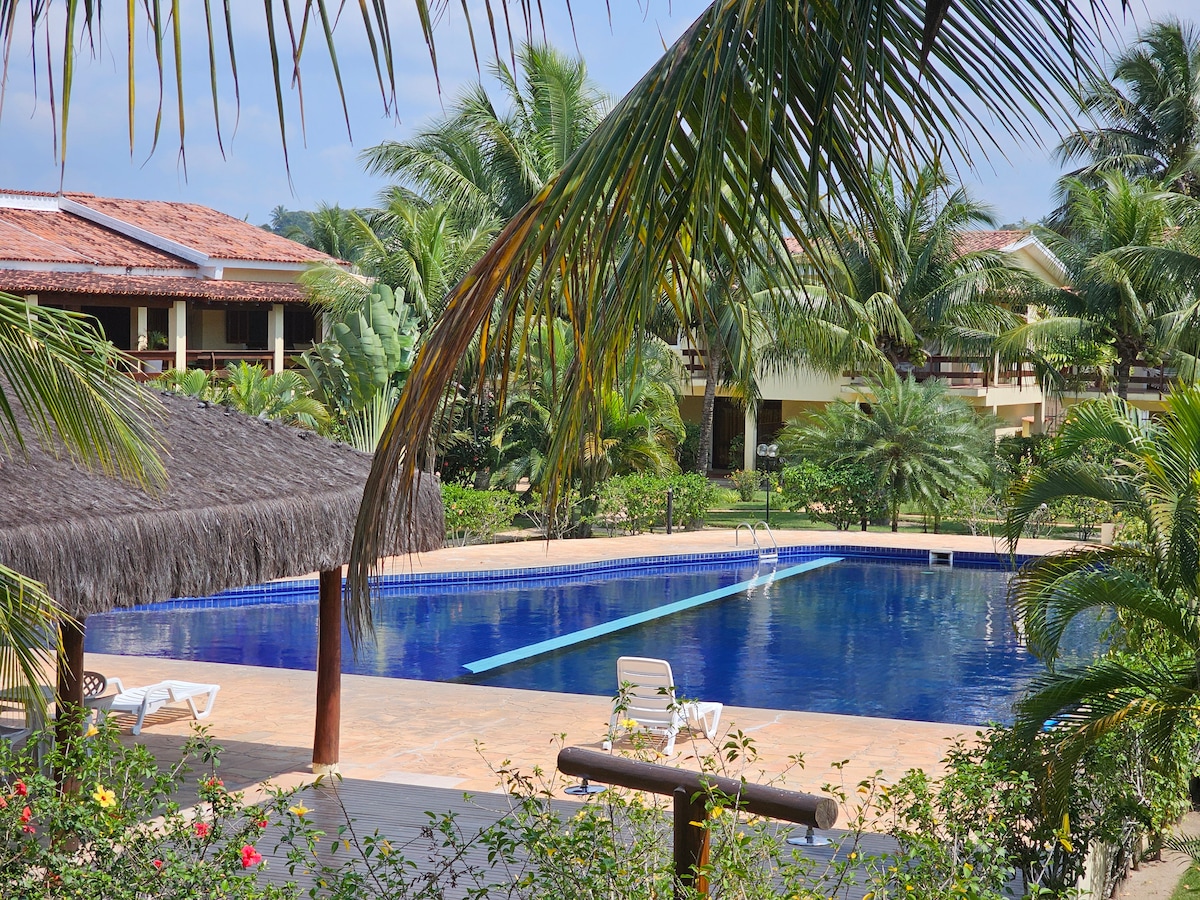 ¿Quieres paz? ¡Solo ven! Nuevo condominio, ambiente familiar, junto a la playa de Mutá con piscinas naturales (se puede ir a pie). Aguas cálidas y tranquilas, perfectas para los niños. Cocina completa, Airfryer, Suite con aire acondicionado Split, TV, cama Queen y 2 individuales con ropa de cama y baño. Sala con sofá cama, TV +1 baño + aire acondicionado. Hermosa piscina frente a usted con mesas y sillas de sol, barbacoas y sauna para relajarse. Vigilancia las 24 horas. Wifi privado de alta velocidad. ¡Hasta pronto!