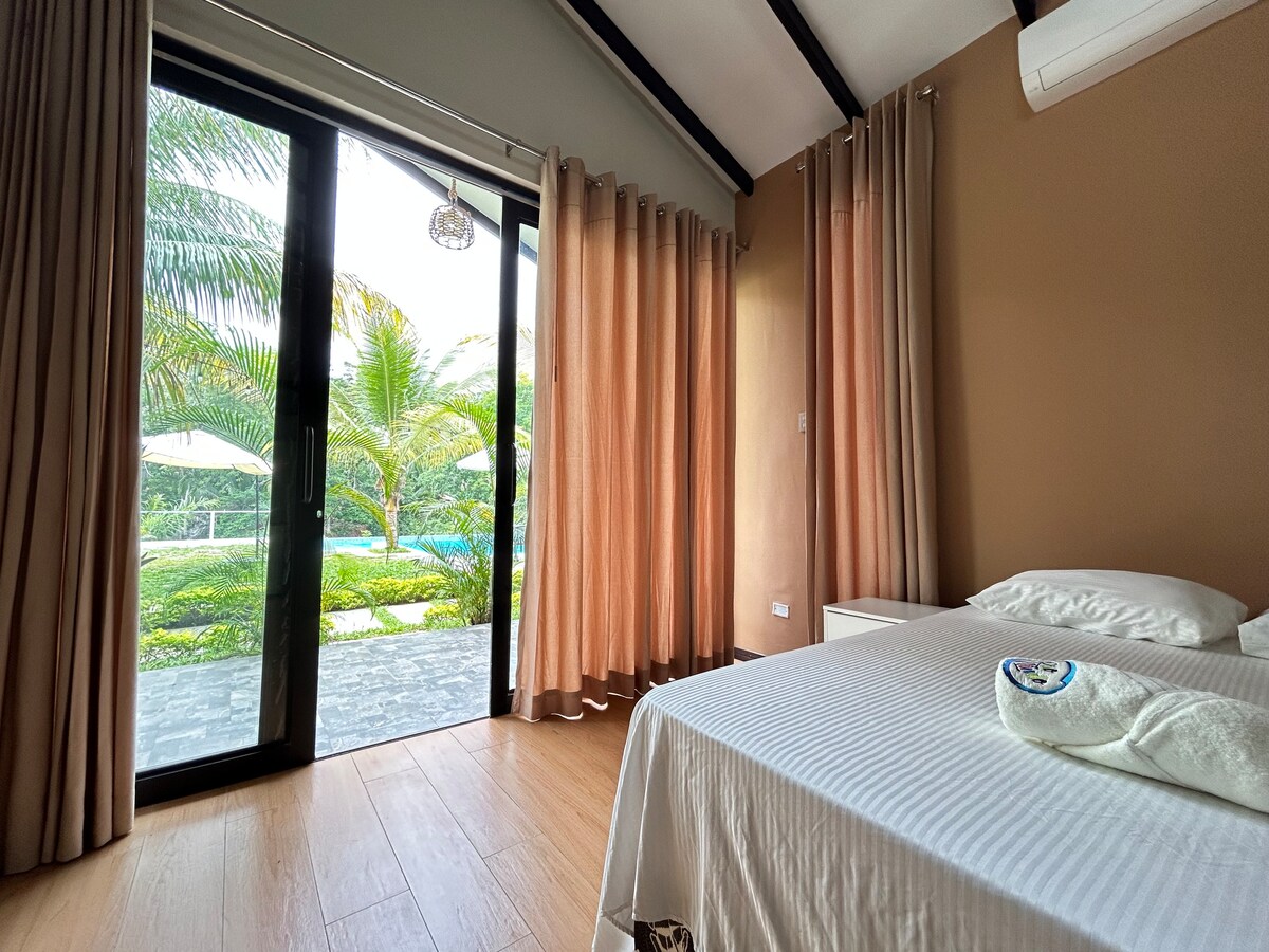 ¡Descubre la magia de la selva en nuestro Glamping! Diseñado para los amantes de la naturaleza, aventura y bienestar, con vistas panorámicas de la montaña. Relájate en una cama queen y disfruta de la terraza, hamaca aerea, el baño completo con ducha caliente, luz solar, cargador para celulares. Tiene wifi rapido de 6 am a 11 pm. La piscina y la cocina son de uso comun y en el comedor hay conexion de 220 volteos.