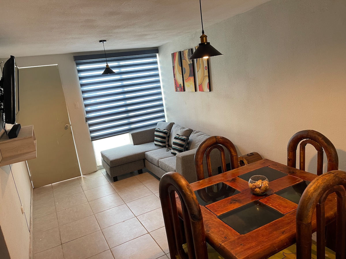 Disfruta de la sencillez de este alojamiento tranquilo y céntrico. Cerca de la salidas de Celaya más rápidas , cerca de hospital materno, Honda , Avon, central de abastos , central camionera , muy Agusto para poder descansar después de un día de trabajo , cuenta con su cochera cerrada para dos autos , la casa tiene mini split en las 2 habitaciones , y en la sala ,televisión por cable y internet y en cada habitación pantalla , agua caliente y una cocinita equipada con lo básico