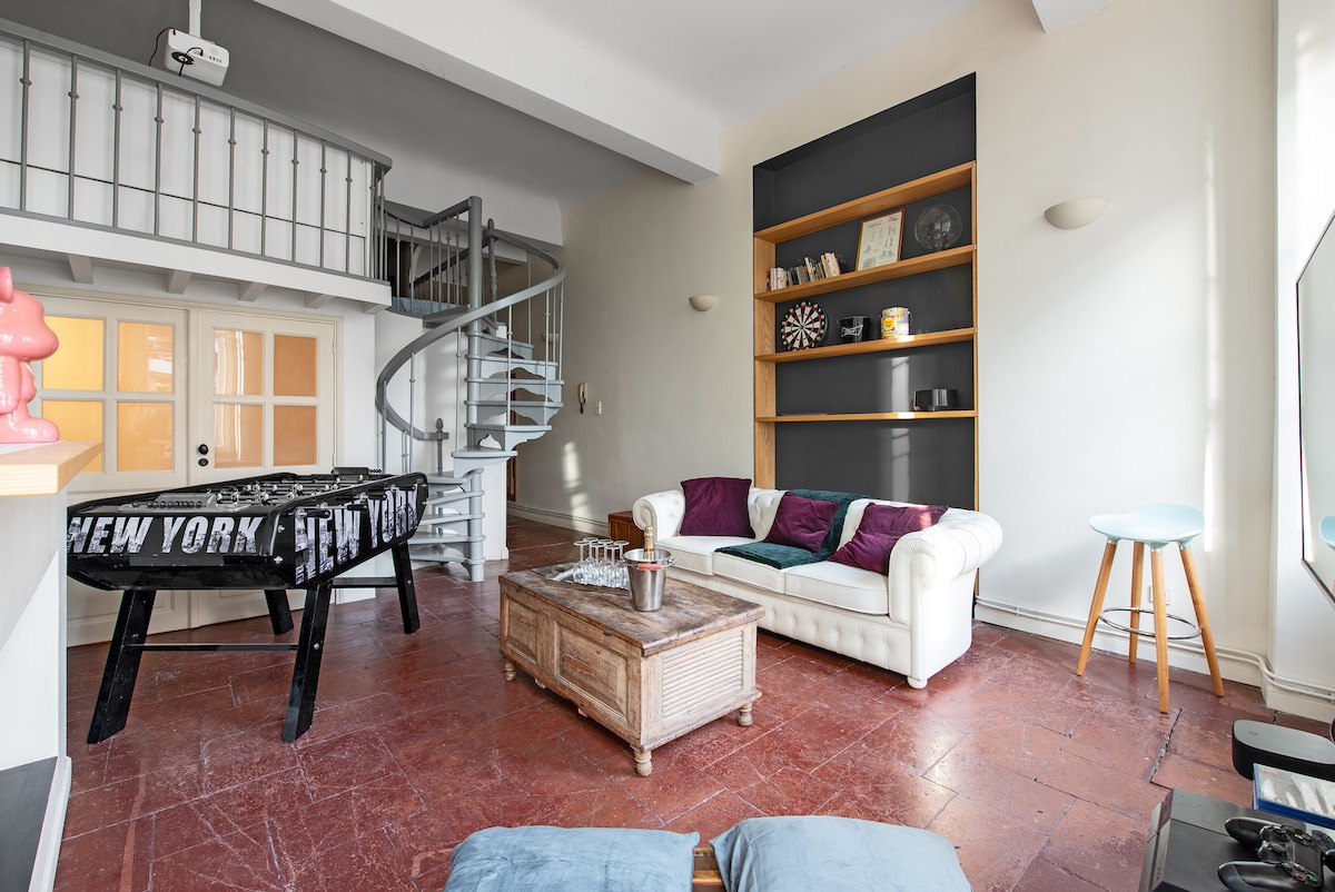 Para dos, para cuatro o seis, para unas vacaciones o para los negocios, este apartamento T3 excepcional en el corazón de la Place des Carmes, barrio icónico de Toulouse Situado en el primer piso de un edificio antiguo, disfrute de sus espacios de entretenimiento (futbolín, cine, dardos, Playstation), su balcón, su aire acondicionado y su hermosa altura del techo. Un kit de inicio con sábanas, café, toalla, esponja, etc. le estará esperando para que no tenga que preocuparse por nada.