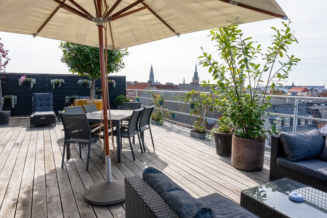 Este elegante lugar para hospedarte es perfecto para un fin de semana prolongado o vacaciones en Copenhague. Liebhaver apartamento de 2 niveles de 124 metros cuadrados como máximo en la propiedad. Terraza privada en la azotea de 50 metros cuadrados con barbacoa, comedor y muebles de salón. 2 dormitorios dobles con espacio en el armario. Cocina totalmente equipada/toda la habitación y una gran sala de estar en 1 planta con acceso directo a la terraza. Baño con ducha, lavadora y secadora. A 500 metros de la estación de metro, a 12 minutos de Kongens Nytorv.