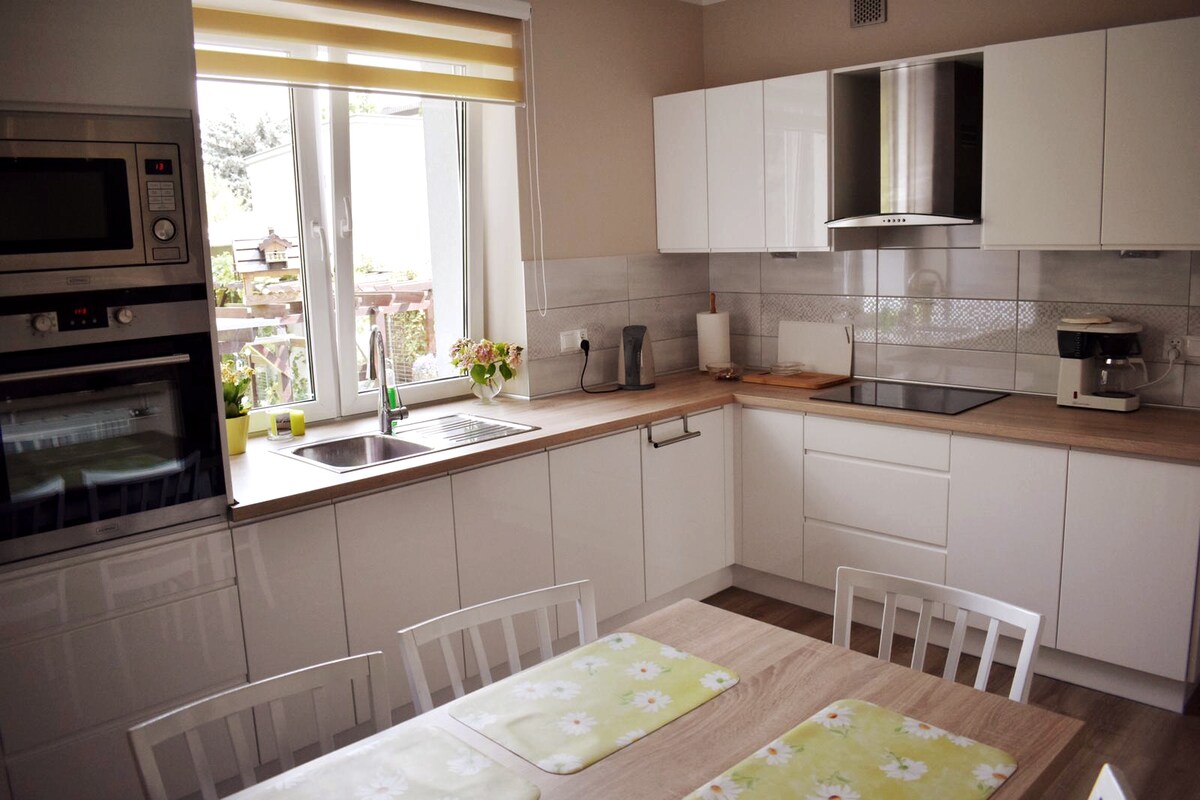 Newly renovated, cozy and stylish 60 m2 apartment on the ground floor of the house, close to the city center, will make you feel like at home. Inside fresh whites, soft grays and clean contemporary lines create a restful ambience. Outdoor you can find a peaceful backyard full of flowers and surrounding green when you can seat and relax. Świeżo wyremontowane, przytulne, 60m2 mieszkanie na parterze budynku mieszkalnego. Do Państwa dyspozycji będzie całe miejsce plus część ogrodowa.
